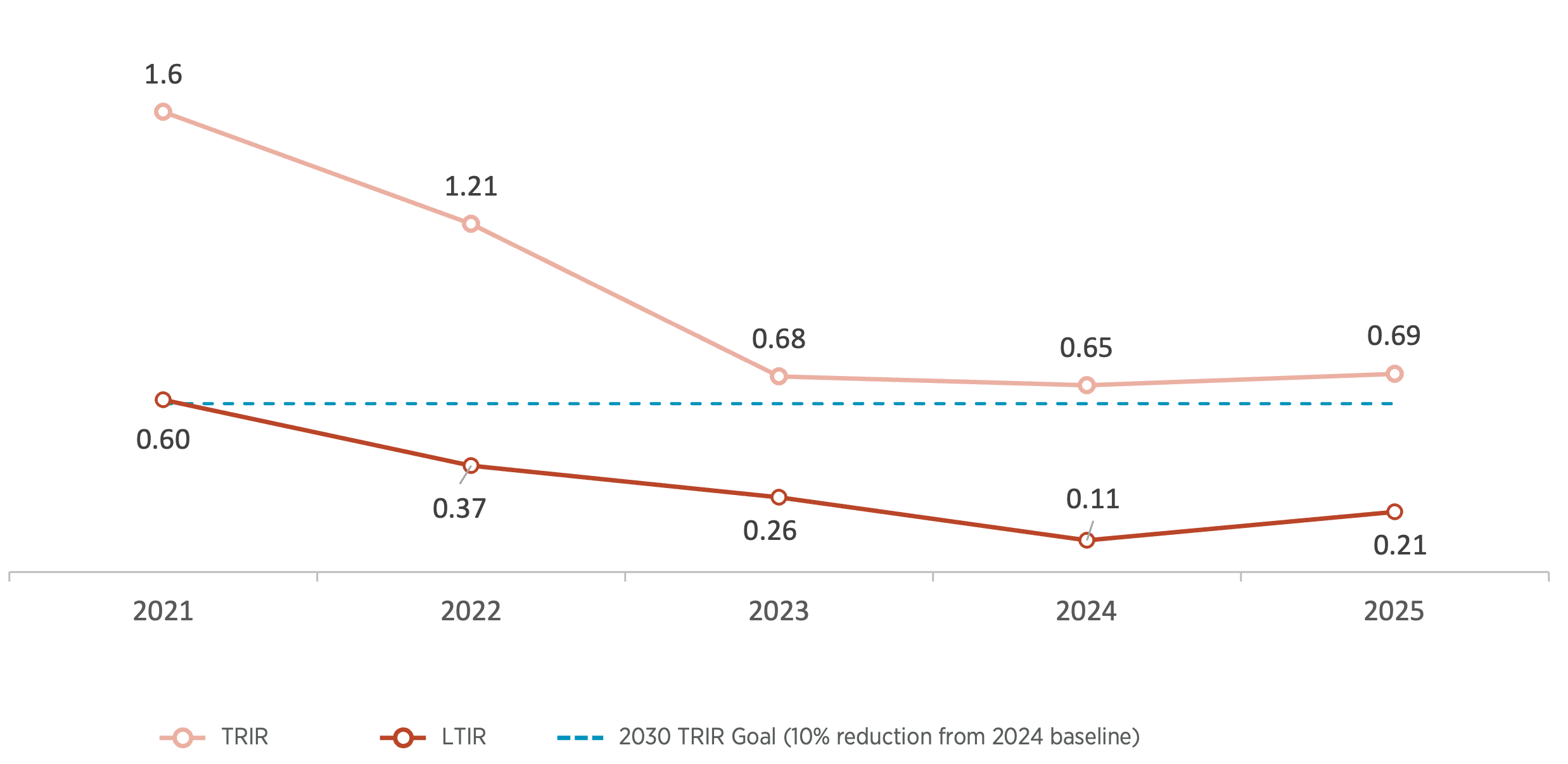 In 2025, we had zero workplace fatalities and continued to maintain our total recordable incident rate (TRIR) well below the industry benchmark of 2.6. Notably, 86% of our sites operated for one year or more without a lost-time incident. Each facility is overseen by an EHS manager committed to helping increase communication and associate awareness and driving safety improvements.